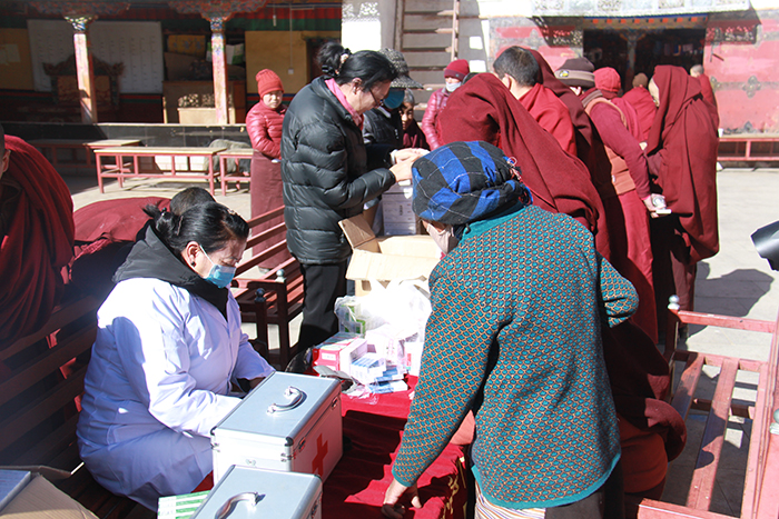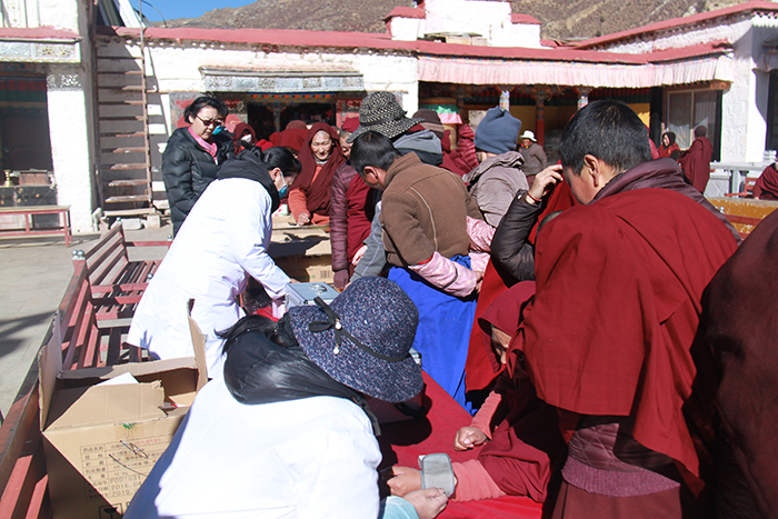为进一步体现党和政府对广大僧众的关心关爱,切实解决僧人看病难的实际困难,保障僧人身心健康,落实各项利寺惠僧政策,2017年2月11日,区党委老干部局联合西藏阜康医院专家来到曲水县雄色寺,为当地僧众和信教群众开展送医送药免费义诊活动。