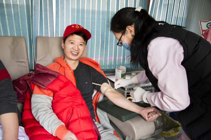 王斌董事长带头献血