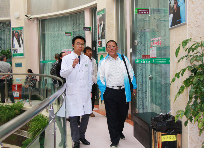 6月19日上午,在我院医院管理研究所何静执行主任的陪同下,陈建平主任走访了西藏阜康医院、阜康医院健康体检中心、阜康医院心脑血管分院、阜康医院妇产儿童分院,张德才院长和扎西顿珠副院长隆重接待。陈建平主任对我院的健康体检、妇产专科给予了高度评价,他指出西藏阜康医院可在产后康复、膝关节康复、神经康复、产后保健方面大有所为。陈建平主任走进我院针灸理疗科对我院针灸理疗科医生们进行了专业指导,针灸理疗科医生们表示受益匪浅。