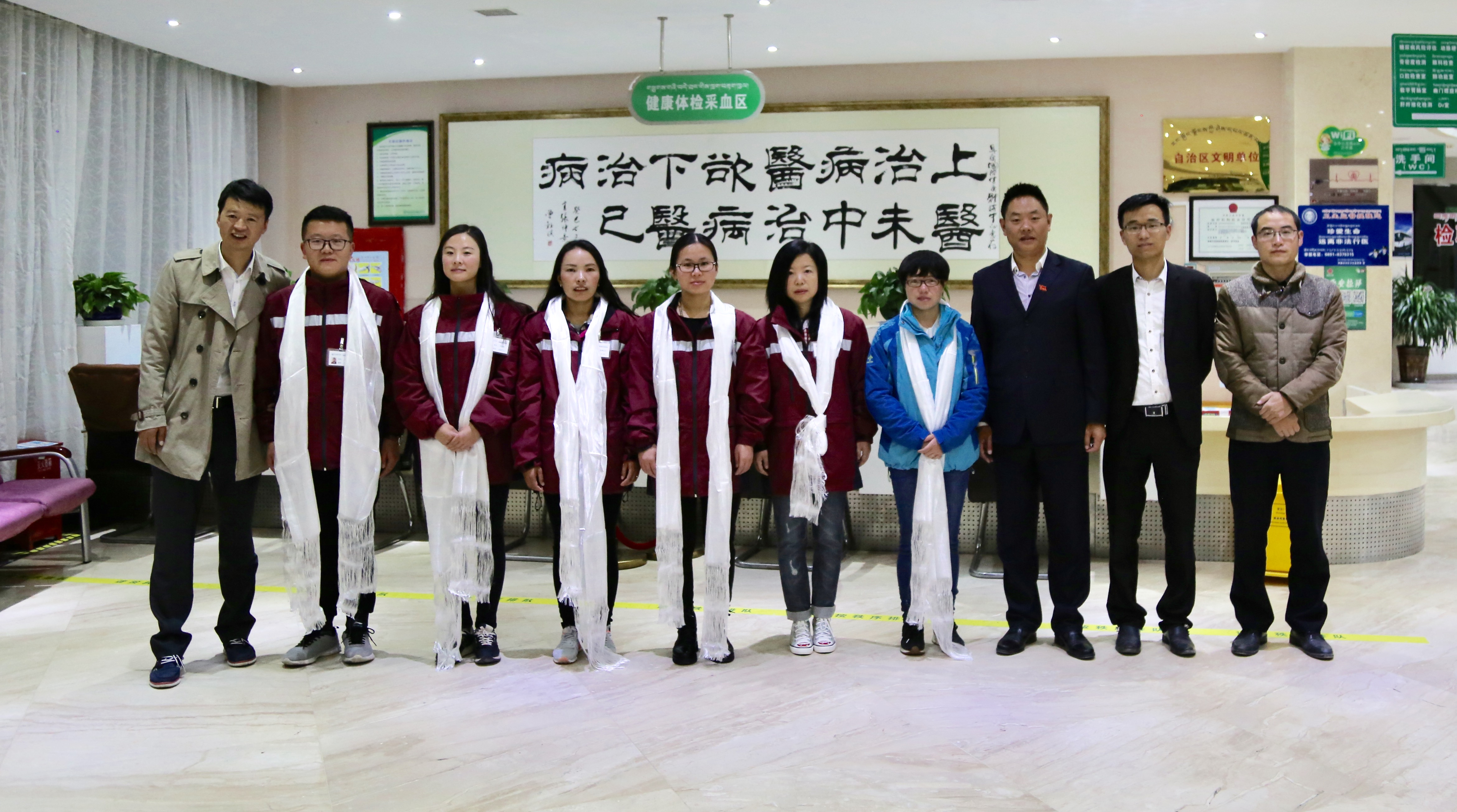 9月16日早上四点,工作人员准时出发乘飞机前往阿里进行包虫病筛查支援工作,党委书记王斌同志、陈彬副总经理特意赶来相送,并为工作人员献上哈达。