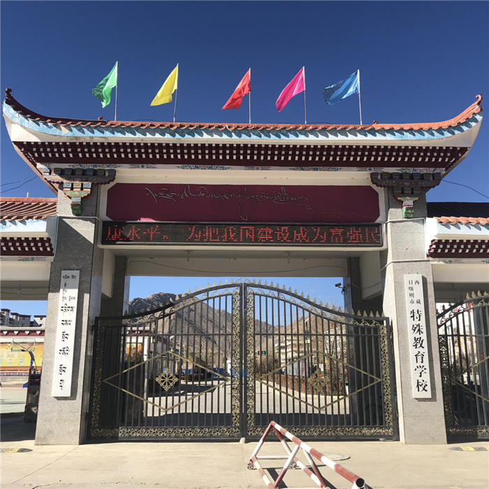 日喀则市特殊教育学校于2008年开始筹备,2010年正式招生,主要招生对象是日喀则18个县区和阿里地区的聋哑、盲、智障的孩子,学校现有14个教学班,在校学生225人。学校提供九年义务教育和基础职业技能培训,实行封闭式管理。