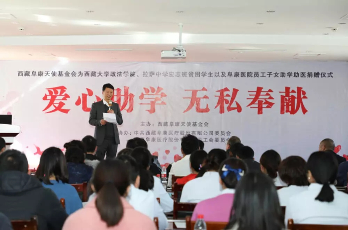 11月28日下午3点,“西藏阜康天使基金会助学助医捐赠仪式”在西藏阜康医院妇产儿童分院四楼会议室举行。西藏阜康天使基金会理事长、西藏阜康医疗股份有限公司党委书记、董事长王斌,西藏大学政法学院党委书记罗布,拉萨中学校长陈飞,受助学生家长代表,受助学生代表以及阜康医疗相关领导出席了本次会议。会议由西藏大学政法学院张昊文主持。