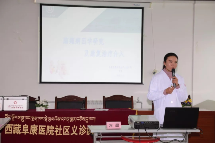 阜康医院康复医学科万晨老师给大家讲解了最新的儿童康复理念,包括日常生活中脑瘫的危险因素、脑瘫的发病率、病因,以及脑瘫儿童康复介入、患者康复的流程与方法,并结合患者康复训练视频,给服务中心治疗师分享了康复训练的方法。同时,阜康医院义诊组也为孩子们进行了检查并为他们免费发放药品,认真询问患者用药情况、耐心细致地说明用药方法。后期阜康医院康复医学科还将对每一位患者免费提供三天的评估及康复指导。