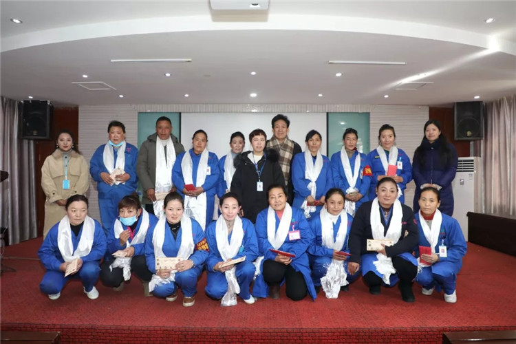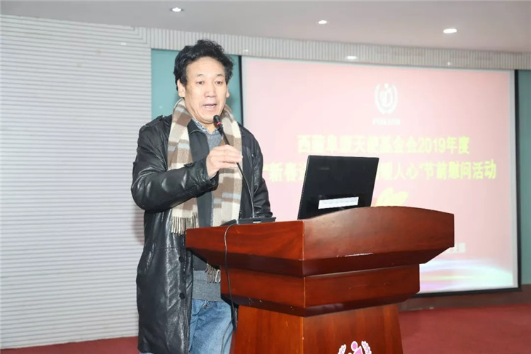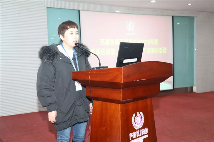 西藏阜康天使基金会秘书长吉拉带来了阜康天使基金会创始人王斌、刘潇潇对困难员工的祝福和慰问,勉励大家努力工作,与阜康共同进步,在走向幸福的路上一个都不能少,并祝大家过一个幸福快乐年!由于此次受助人员都是藏族员工,吉拉秘书长用藏语鼓励大家积极生活、努力工作,要用一颗感恩的心回报社会。阜康天使基金会将在区党委、政府的领导下,紧跟时代步伐,发展创新,争取在助医、助学、助困上帮助到更多的人。