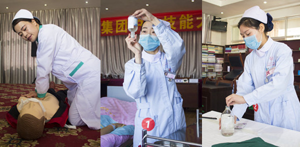 在比赛正式开始后,一位位选手们轮流登场参赛,虽说仍然不能完全压抑各自内心的紧张与激动,但在之前的充分准备之下,我们的美女护士们个个胸有成竹,非常自信而平静地操作起来,就仿佛自己又回到了平时最熟悉不过的工作岗位,操作之前的问询、八步洗手法洗手、准备所需的物品……一条条专业规范的护士技能操作步骤在她们忙碌的身影中有条不紊的呈现而出,展现着“白衣天使”那圣洁美丽而又熟为人知的面容与精神!