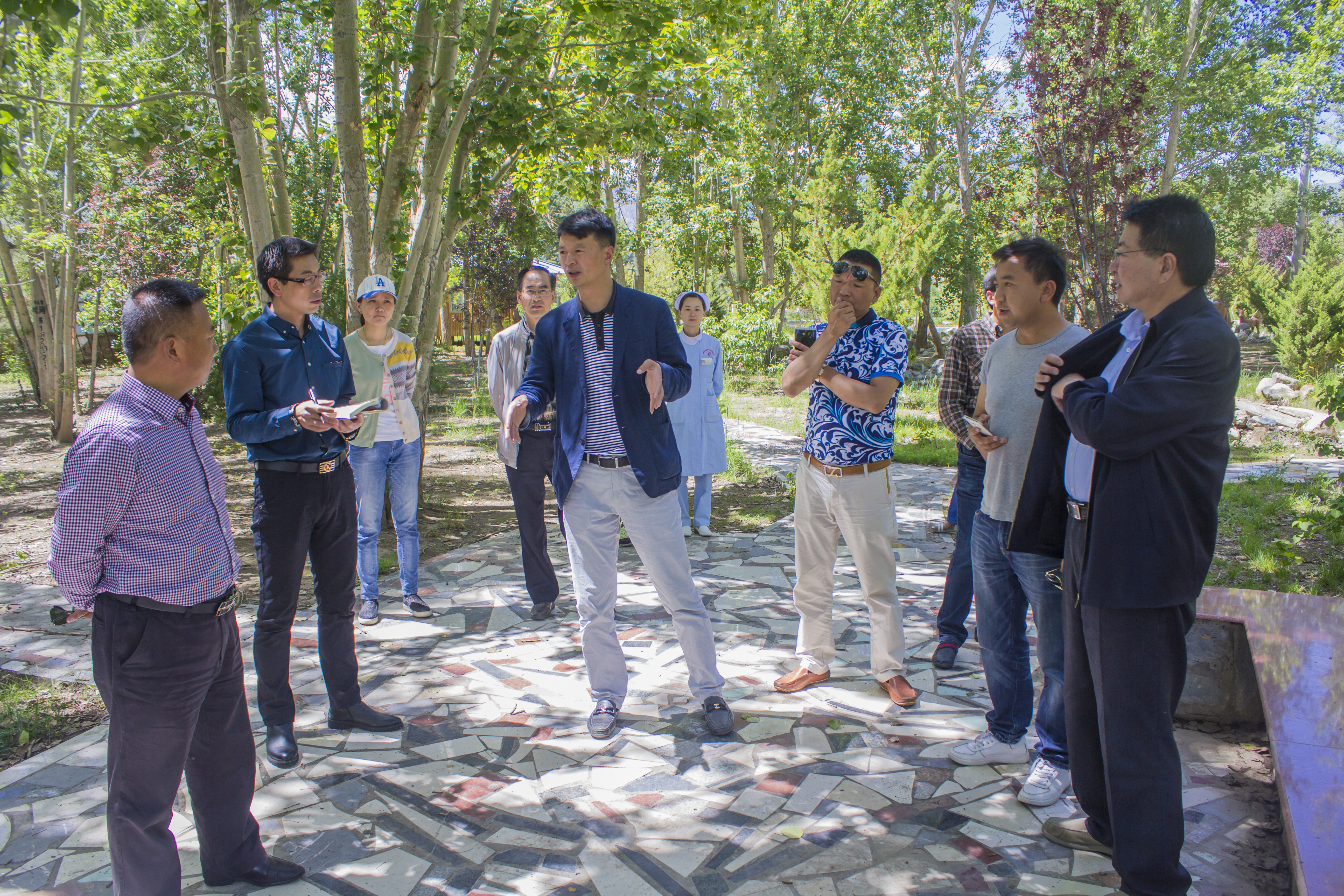 7月7日下午,自治区民政厅“试点医养结合项目考察组”一行在西藏阜康医药集团王斌董事长等管理人员的陪同下,对位于拉萨市城关区仙足岛的“西藏阜康(国 际)健康体检中心和西藏阜康心脑血管医院”进行了实地考察,并对即将试点建设的“西藏阜康在线医养结合医院”规划用地进行细致勘察与测量,详细讨论了该项 目建筑主体的整体规划与功能结构有机结合等多方面需要注重的问题。