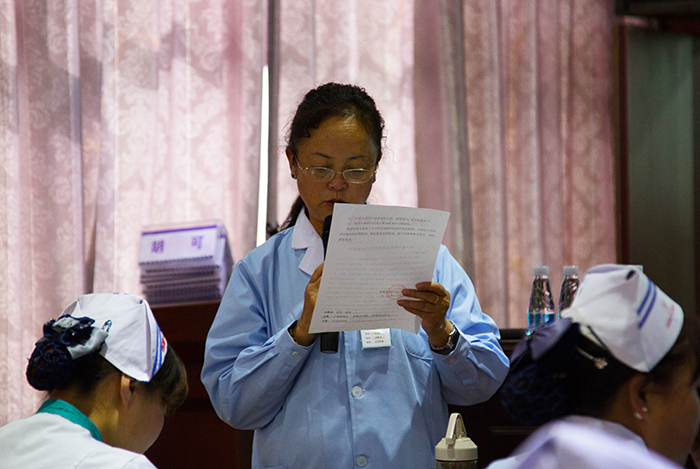 2016年9月23日下午16点整,西藏阜康医院2016年第三季度护理质量反馈大会,在阜康妇产儿童分院四楼会议室进行。阜康医院、阜康妇产儿童医院、阜康心脑血管医院及阜康体检中心全体护士共130人参加了本次会议,会议由敖德秀总院长主持,在会议上院长就2016年我院护理质控工作中存在的问题进行了分析并提出对策。