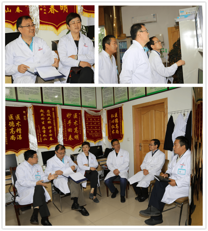 回到消化内科医生值班室,周平红教授和阜康医院医护人员一起进行会诊。周平红教授认真听取了阜康医院消化内科医生的汇报,仔细查阅患者的各种检查资料,对几起复杂病例指明了诊治方向。
