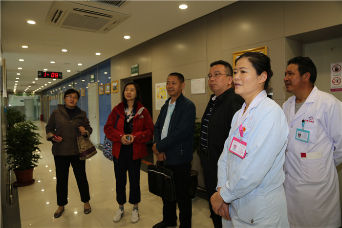 西藏阜康医院业务院长李君、欧珠罗布,院长助理多杰太、李丽及各相关科室负责人一起陪同调研。