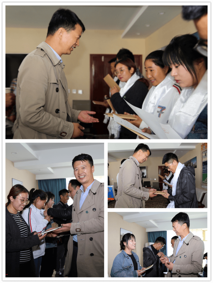 随后,王斌董事长向7名规培生门颁发了《阜康员工守则》,并敬献了洁白的哈达,佩戴了阜康院徽,他临别叮嘱:“谨记阜康嘱托,谨守阜康准则,不辱阜康之名,为阜康争荣!希望你们能够脚踏实地在华西医院和成都市第三人民医院带教老师的指导下完成规培计划,并在三年内考过执业医师资格证和规范化培训资格证,按时归来服务阜康、报效西藏!”