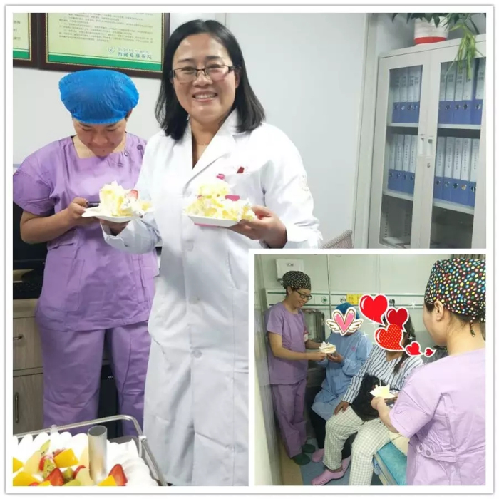 之后,大家一起吹蜡烛,一起切蛋糕,此时再多的艰辛换来的是我们美丽助产士真诚的笑脸,眼里带着泪花,此刻她们的付出与坚守是值得的。