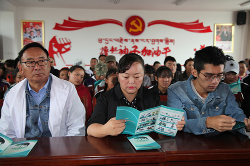 图为自治区残联党组成员、副理事长拉姆卓玛(中)参加“残疾预防进社区”活动