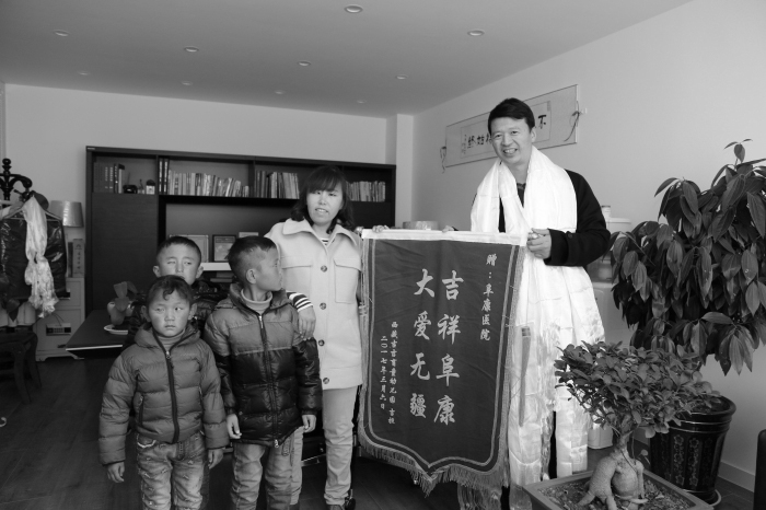27岁的藏族女孩扎西曲宗,小小的个子,看到记者,眼睛笑得弯弯的。她是医院的收费员,两年前来到拉萨阜康医院。扎西曲宗只有初中文化,家在昌都市芒康县,父母没有文化,排行家里7个孩子中的老二。她要靠着这份工作供养家庭。去年藏历新年前夕,扎西曲宗与公司10多个家境较为贫困的员工,获得医院的生活补助6000元。她激动地对记者说:“医院对我们都很好,我只有干好工作才能回报王董事长。”