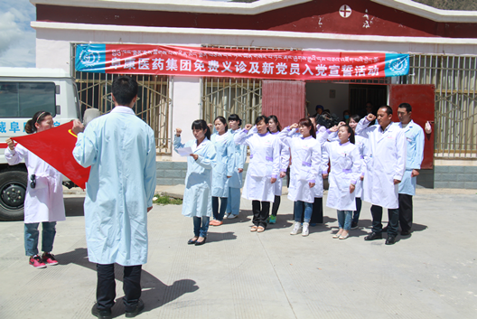 宣誓仪式完毕后,新党员们和来自西藏阜康医药集团的其他医护人员开始了义诊活动。来自该村的村民排着有序的队伍看病诊治,测血压、做B超、取药、向专家咨询等整个义诊现场井然有序。有着近40年党龄的老党员嘎布院长表示,在建党日这一天举行新党员进村义诊活动,为的就是充分发挥共产党员的先锋模范作用,时时刻刻树立党员们为民服务的意识。同时,医务人员除了认真为村民们检查病情、解答疑问外,还讲解卫生保健、安全饮食、合理用药等卫生常识。此次活动共诊治病人200余名,有80余名患者做了腹部彩超,免费发放50多种价值15000余元的药品,穷达村村民对西藏阜康医药集团的义诊活动表示感激,并希望西藏阜康医药集团以后经常到该村免费义诊,为村民送去健康。