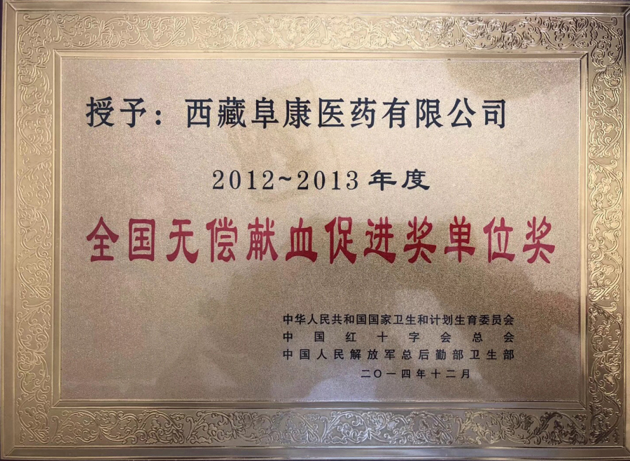 2012-2013年度 全国无偿献血促进奖单位奖