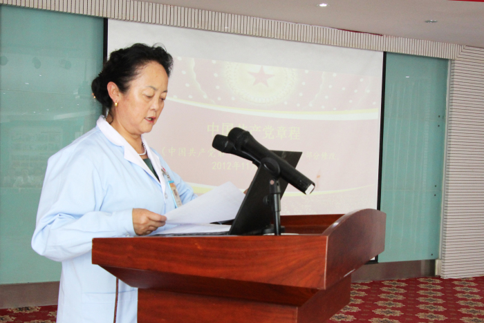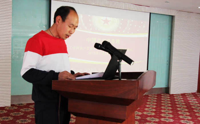 之后,敖德秀同志又带领全体党员、预备党员、积极分子逐字逐句温习党章和党誓,并举行了做合格共产党员,亮证挂牌活动仪式。