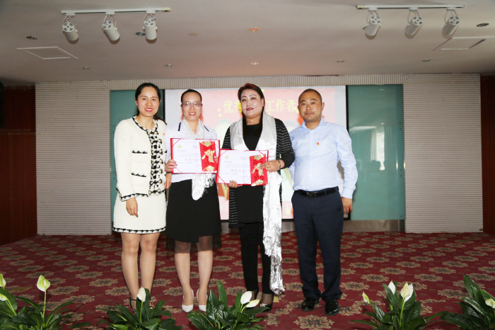 牛亚青、张政、雷羊州、刘秀等同志获得“优秀共产党员”称号,何文秀同志、索珍同志获得“优秀党务工作者”称号,义诊组党小组获得“优秀党小组”荣誉,阜康“老兵之家”支部委员会、中共西藏阜康药店联合支部委员会获得“先进基层党组织”荣誉。陈彬、何文秀、刘秀、李映、李燕科、江润霞、孙自豪等7位同志获得阜康雪域天使志愿者服务队 “志愿者之星”。区党委组织部四处和公司党委领导为获奖人员颁奖。