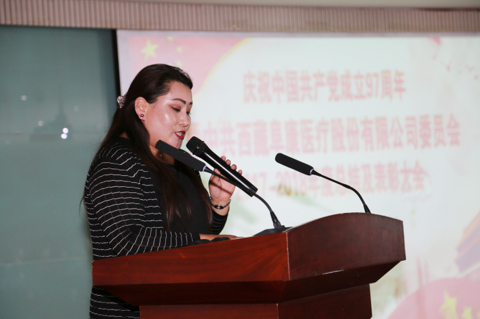 6月29日,“庆祝中国共产党成立97周年暨中共西藏阜康医疗股份有限公司委员会2017-2018年度总结及表彰大会”在阜康妇产儿童分院4楼会议室隆重召开。公司党委书记王斌,区党委组织部组织四处(两新工委办公室)负责人沈策,公司党委副书记陈彬、党委委员刘潇潇、刘连福、杨国洪及全体党员参加会议。