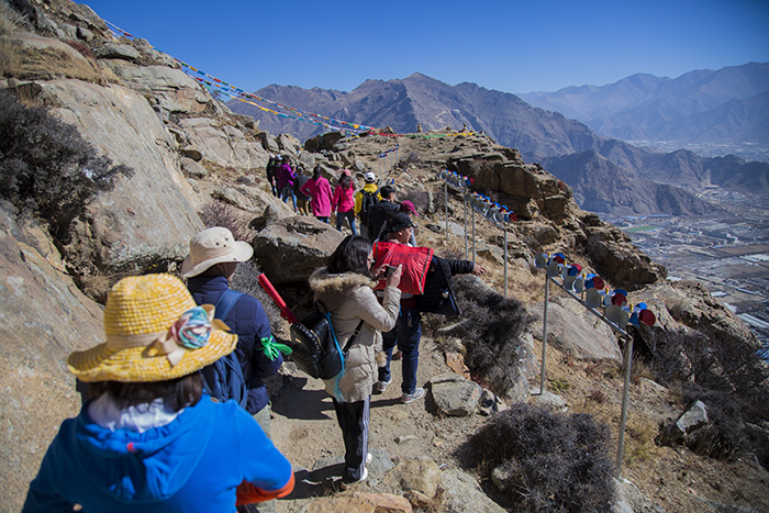 为保证参加活动人员的人身安全,支部对参加人员着装、随身携带物品等做出了明确规定,所有人从阜康妇产儿童分院集合统一出发驱车前往色拉寺。我们将人员分为三队,为保证体力给大家发放了水果、水、巧克力等,同时还给带队的小组长分发了垃圾袋,鉴于西藏脆弱的生态环境,为保护大山环境,我们要求所有人员把爬山过程中产生的垃圾,和以前转山者遗留下的垃圾一并带走,为环境保护贡献自己微小的力量。