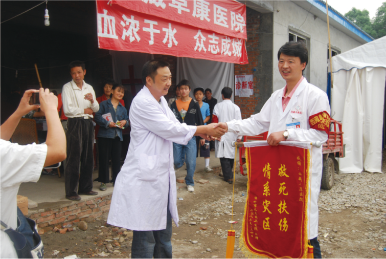 绵竹市灾区人民口口相传,说九龙镇来了西藏的医生,给他们带来了最好的医护人员和治疗设备。这样的信息一传十、十传百,到后来,九龙镇方圆数十公里的村民都赶过来看病治疗。