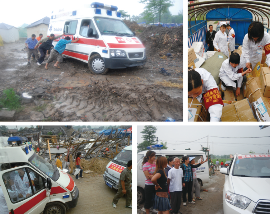 “灾区人民的现在继续医疗救援,我们要把最好的设备、最精湛的技术力量派到灾区去。"在出发时,领队王斌曾这样告诉大家。然而,西藏到四川远隔几千公里,医疗物资的运送是一个大问题,为此医院临时决定出资100多万在成都购买药品、便携式B超机、X光机、急救车、越野车、帐篷等物资。“我们花这么多钱不为别的,就想争取时间,尽快赶到灾区,用最好的设备、最好的医疗手段为灾区人民减轻痛苦,抚平伤痛。”;在赶往灾区的路上,领队王斌动情地对记者说。