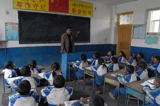 窗外的天还一片漆黑,米玛老师就起床了,看了看时间,凌晨六点,洗漱完毕,六点二十分,他走到位于学校中央用货车轮毂制成的钢铃前,用小铁锤敲响钢铃,组织学生晨跑。米玛老师忙碌的一天就这样开始了。如此往复,不知不觉中,他已在这里默默奉献了十一年。