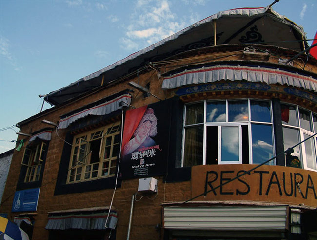 在拉萨工作快5年,第一次去了玛吉阿米,这是一个爱情传说酝酿岀来的藏餐厅。为了仓央嘉措与玛吉阿米的邂逅传说,为了感悟诗人“在那东山顶上,升起皎洁月亮,玛吉阿米的面容,渐渐浮现心上”那句情诗,为了寻觅玛吉阿米的足迹,我顺着八廓街绕到了东南角,一座橙黄色三层藏式小楼映入眼帘。