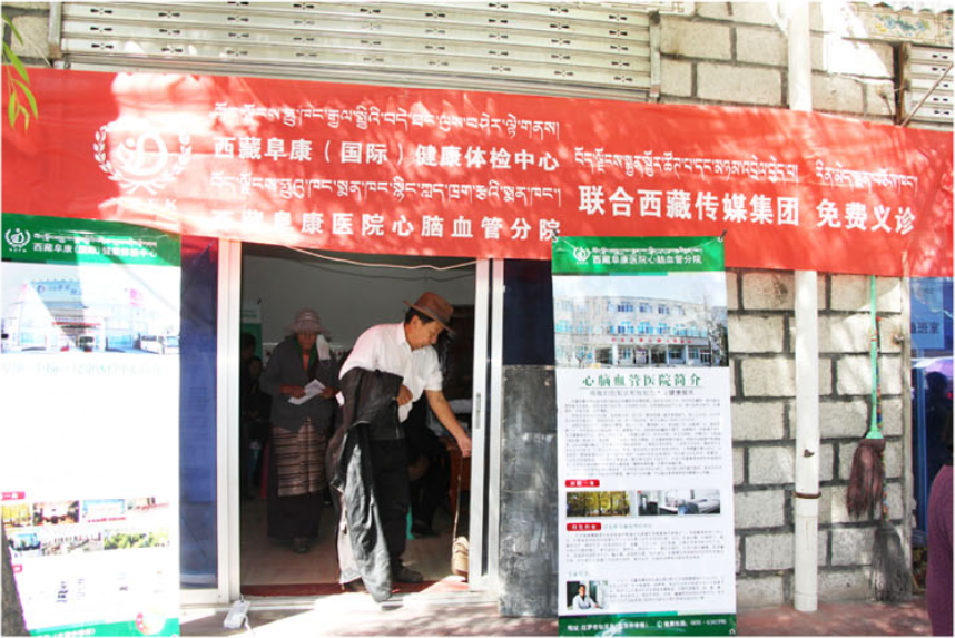 10月,西藏传媒集团联合西藏阜康医院心脑血管分院和西藏阜康(国际)健康体检中心开展“送健康”活动。各医护人员走进社区,对社区居民进行健康体检。