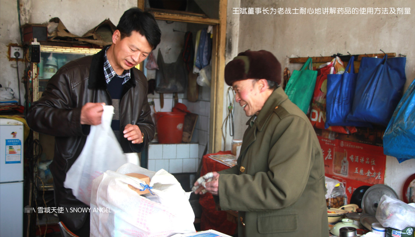 刚从国外考察学习回来的王斌先生,忙于医院各项工作之时,仍没忘记这么一-位老同志。2014年3月10日,趁着藏历新年,王斌先生在百忙之中,带着罗同志日常所需的药品及一些软化血管的补品再次来到这位老同志家“串门”。