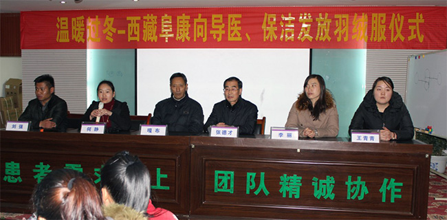 入冬以来,拉萨的气温降至零度以下。优质服务办为三家医院的保洁、导医购买了棉衣并2014年12月16日在妇产儿童分院四楼举行发放仪式。张德才院长、嘎布院长等院领导出席此次发放仪式。
