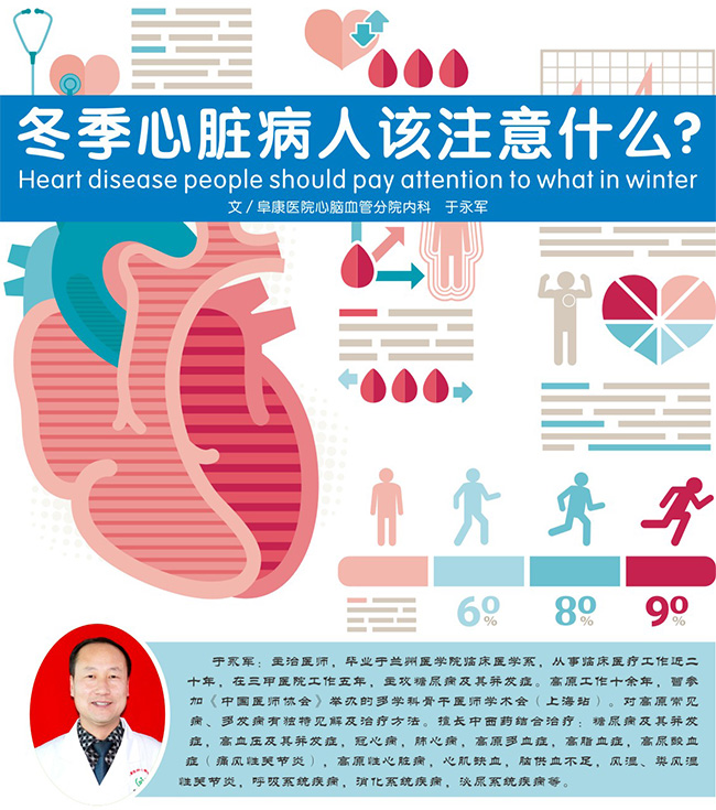 冬天日光照射相对较少,有些人易激动,情绪过于波动会使血液中胆固醇含量增多,血压升高,不利于心脏病的康复或诱发心脏病,所以要控制烦躁、激动的情绪。