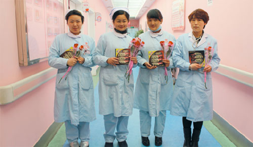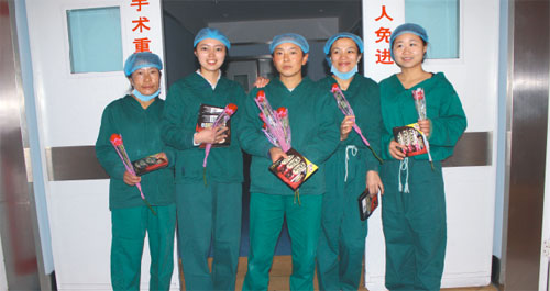 2015年3月8日是一年一度的“三•八”国际劳动妇女节,我院领导在相关科室负责人的陪同下,为全院女职工送去了节日慰问。为女职工们送上鲜艳玫瑰花和巧克力,祝她们度过一个开心、愉快的三八妇女节。
