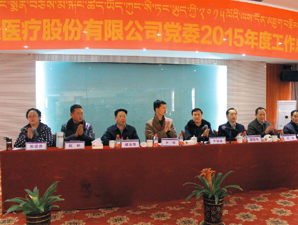 仪式由党委专职副书记敖德秀同志主持,由区工商联党组成员、副主席、区非公党工委副书记廖贻东同志宣读《中共西藏自治区非公党委关于成立中共西藏阜康医疗股份有限公司委员会的决定》;西藏阜康医疗股份有限公司党委书记王斌同志发表重要讲话,伴随热烈的掌声,李瑞富同志及王斌同志共同为中共西藏阜康医疗股份有限公司委员会揭牌。仪式结束后,自治区非公党工委各位领导一行参加了我公司党委2015年终总结表彰大会。