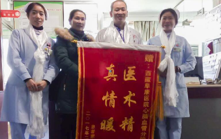 2017年2月26日,患者巴桑(化名)委派家属为阜康医院心脑血管分院送去锦旗,以表达阜康医护人员对他的精心医治及照顾之情。